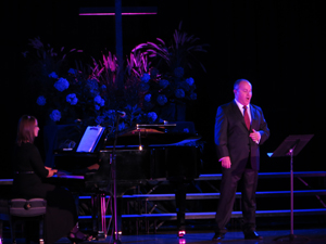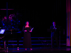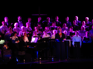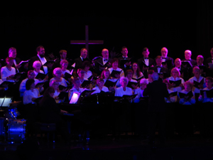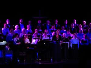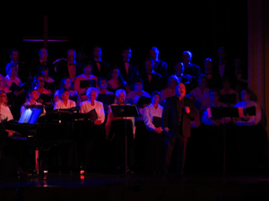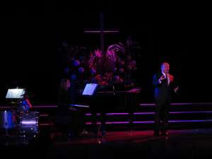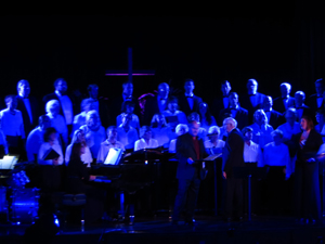 The concept for this show was to bathe the performers in richly colored light to match the mix the emotion of the operatic and religious numbers performed throughout the evening. Being a benefit concert held in an older catholic HS auditorium there was limited load in time and limited lighting fixtures in house. I was able to borrow 16 Chauvet Colorado led's and placed them on two crank lifts in the wings as well as some floor units and several on the balcony position to provide the rich colors needed for the musical numbers. Overall a fantastic production despite the limited resources and little prep time.